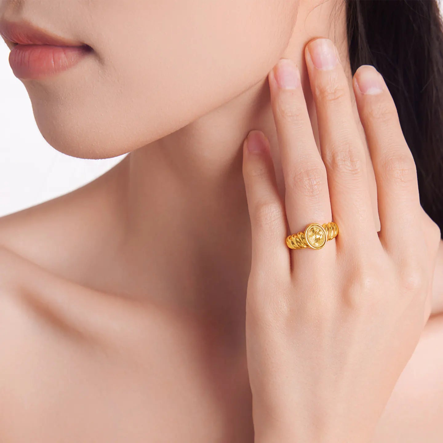 Advanced hard-gold technology strengthens the structure of the ring, helping maintain the sculpted shape while improving resistance to bending and everyday wear. -