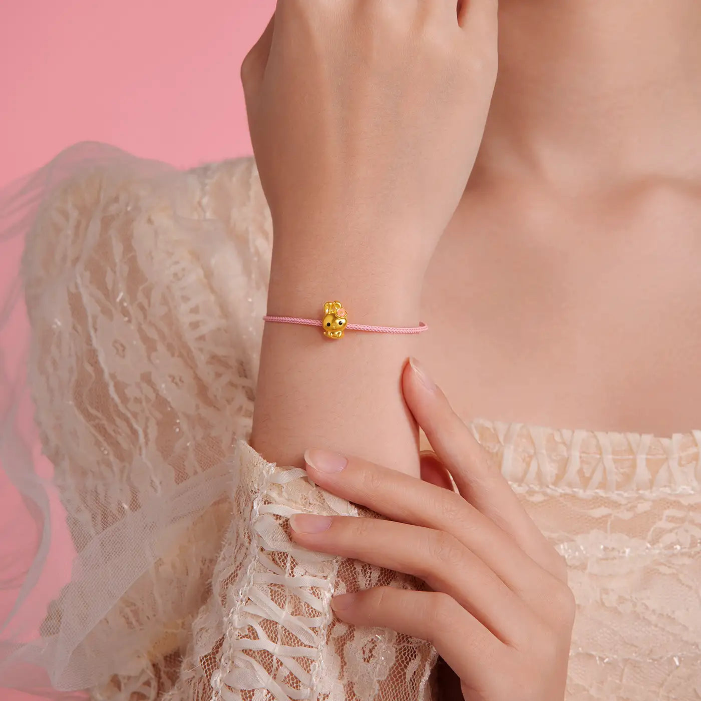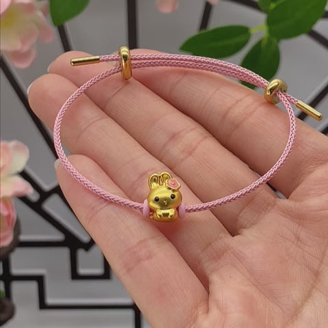 Playful, cheerful, and full of personality, this adorable bunny charm bead captures the joyful spirit of the Cute Pets collection. Crafted from 999 pure gold with durable hard-gold technology, the charm features a sweet rabbit design topped with a delicate pink enamel flower. Lightweight and easy to style, this charming bead adds a touch of playful elegance to bracelets, necklaces, and DIY jewelry creations.
